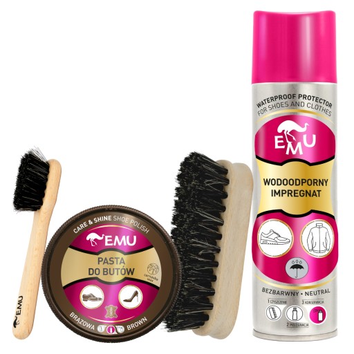 Jeśli cenisz wysoką jakość i dbasz o swoje obuwie, ten zestaw produktów do pielęgnacji butów ze skóry licowej i ekologicznej jest idealnym wyborem. Niezawodne preparaty EMU Shoe Care zapewnią Ci doskonałe rezultaty, a Twoje buty będą prezentować się zawsze znakomicie. Invest in the best care for your shoes!