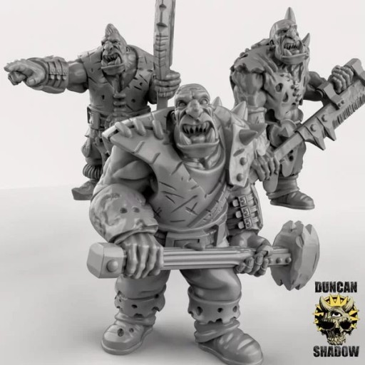 Oferujemy zestaw sześciu figurek Ogres with Hand Weapons autorstwa Duncan Shadow, wydrukowany na drukarce żywicznej.