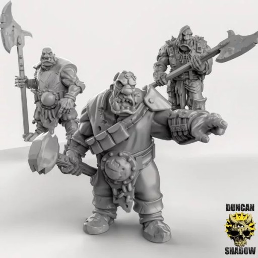 Oferujemy zestaw sześciu figurek Ogres with Great Weapons autorstwa Duncan Shadow, wydrukowany na drukarce żywicznej.