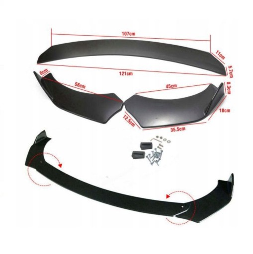 Uniwersalne lotki dokładki przedniego zderzaka. Nadają samochodowi bardziej agresywny wygląd.