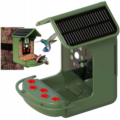 - Karmik wyposażony jest też w poidełko dla ptaków oraz specjalną komorę na nektar dla kolibrów.