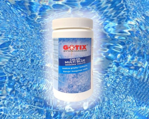 - Polski bezpieczny chlor do basenu niebeskie tabletki multifunkcyjne 20 gram.