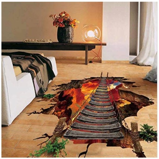 Обои для пола, стены, 3D, мост через кратер, вулкан, пропасть, большая пропасть