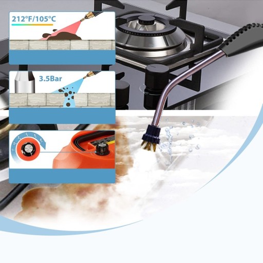 Myjka parowa ma 6 poziomów o różnej intensywności, które można regulować. Wyposażony w 3 różne dysze i przedłużka o długości 21,8 cm,, które nadają się do czyszczenia ścian, kuchenek, tłuszczu, kuchenek mikrofalowych, pralek, lodówek itp. Szerokie zastosowanie w kuchniach, łazienkach, meblach, samochodach itp.
