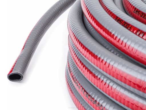 Dodatkowo jest 6-warstwowy (warstwa wewnętrzna wyprodukowana z surowców przeznaczonych do kontaktu z żywnością, czarna dusza, oplot krzyżowo-trykotowy wykonany z najwyższej jakości przędzy poliestrowej, oblewka kryjąca) i odporny na działanie niskiej i wysokiej temperatury od -25°c do +60°c