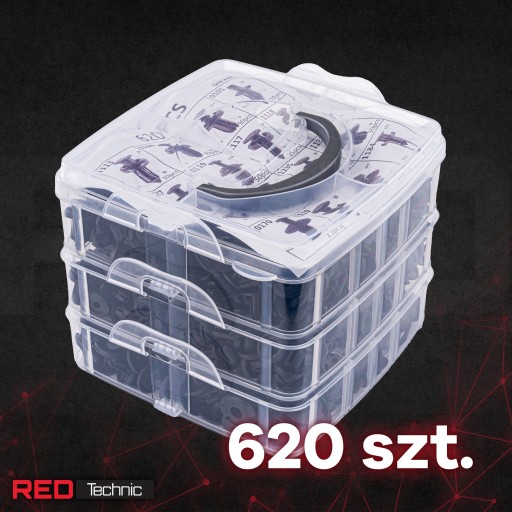 - 620 elementów w różnych rozmiarach i kształtach pasuje do większości modeli aut.