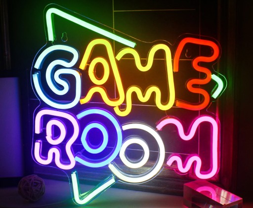 KOLOROWY NEONOWY NAPIS LED ‘Game room’ to świetny pomysł na dekorację pokoju gamingowego, studia gier, pokoju młodzieżowego czy gadżet imprezowy na spotkanie ze znajomymi. Z takiego prezentu ucieszy się każdy miłośnik oryginalnych ozdób ściennych czy gamingowych gadżetów.