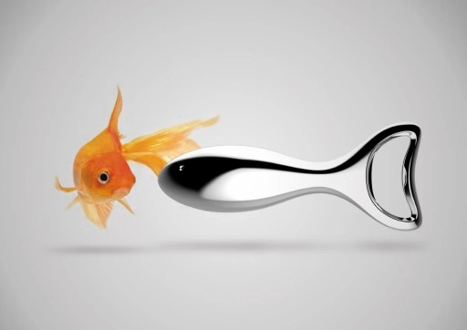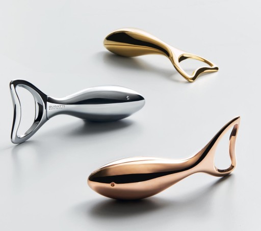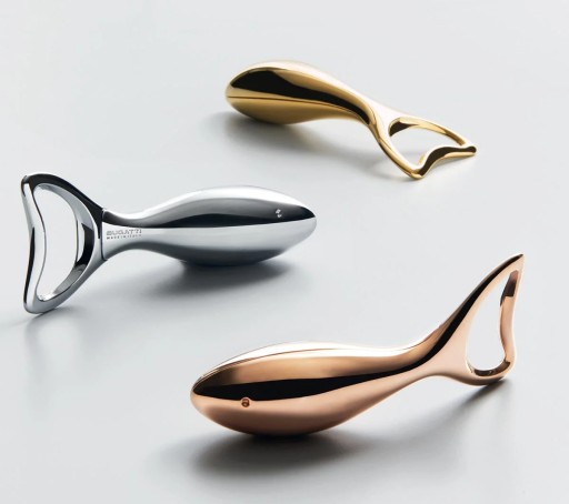 Złota rybka to symbol dobrobytu i spełnionych marzeń. Inspirację postanowił wykorzystać Alessio Romano: taki kształt nadał eleganckiemu otwieraczowi do butelek Lino Bugatti.