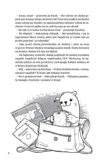 Tylko kto mógł to zrobić i gdzie obecnie znajduje się ich zguba? Na szczęście nie wszystko stracone! Zagadroid przesyła im wskazówki dotyczące miejsca swojego pobytu. Dzięki temu Karolina, Kazik i wydra Hiacynta mają okazję odszukać swojego przyjaciela. Ruszając tropem złodzieja, muszą przygotować się na rozwiązanie aż 40 zagadek, które ujawnią, gdzie się on znajduje.