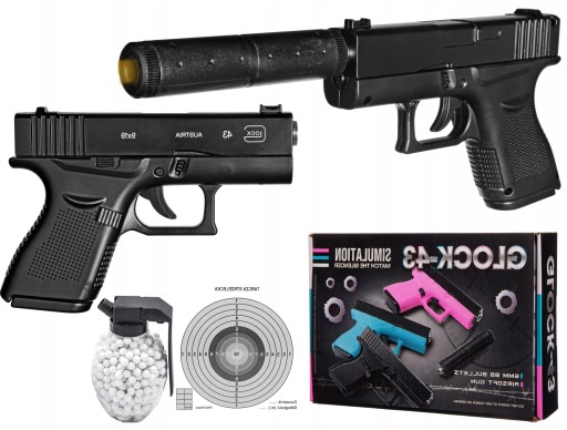 METALOWY PISTOLET SPRĘŻYNOWY NA KULKI Z TŁUMIKIEM GLOCK 43 TŁUMIK 6 MM ASG