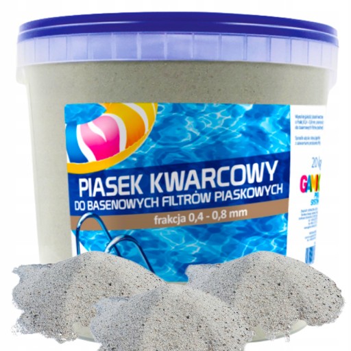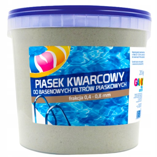 Piasek odpylony, niebrudzący, idealnie nadaje się jako złoże filtracyjne do pomp basenowych z filtrami piaskowymi.