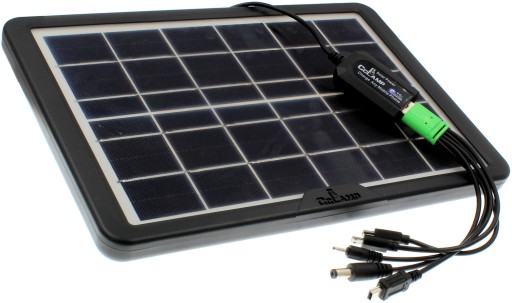 Zestaw przeznaczony do ładowania telefonów, powerbanków, itp dzięki zastosowaniu panelu słonecznego. Bardzo dobrze sprawdzi się w ogrodzie, na działce , kampingu, wycieczce, na łodziach lub wszędzie tam, gdzie zechcemy naładować urządzenie wykorzystując energię słoneczną. Przewód wyprowadzony z panelu zakończony jest gniazdem USB, dodatkowo w zestawie dołączony jest multikabel z 5 końcówkami: USB typ C, miniUSB, microUSB, wtyk 5.5x2.1mm, wtyk 2.35x0.7mm.