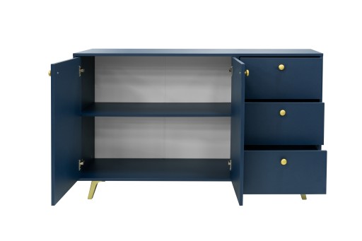 - szafa: drążek na wieszaki, trzy szuflady, półki