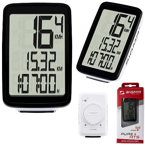 Największy licznik rowerowy marki Sigma z co za tym idzie najbardziej czytelny. Mode Sigma Pure 1 ATS to bezprzewodowa wersja modelu Pure 1. Licznik wyświetla nieustannie 3 najważniejsze funkcje. Po naciśnięciu przycisku pojawiają się dodatkowe wartości całkowite. Duży wyświetlacz, obsługa ograniczona do minimum i 5 najważniejszy funkcji dla każdego rowerzysty to najważniejsze atuty modelu Pure 1.