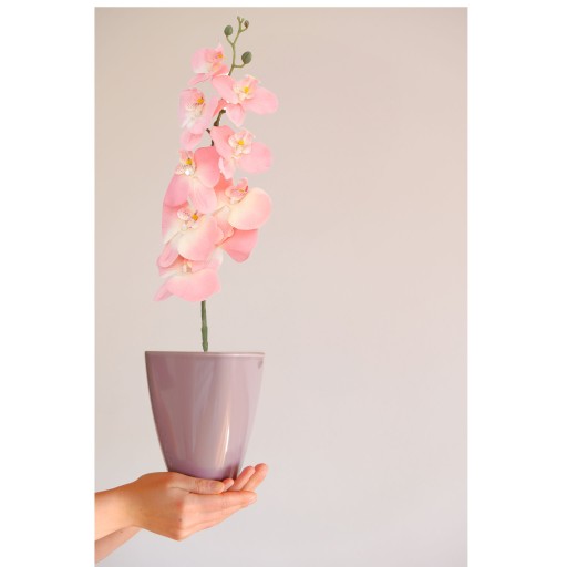 Gałązka storczyka doskonale komponuje się z różnymi aranżacjami. Może stanowić samodzielną dekorację lub być częścią większej kompozycji floralnej, pasując do każdego stylu – od nowoczesnego po klasyczny.