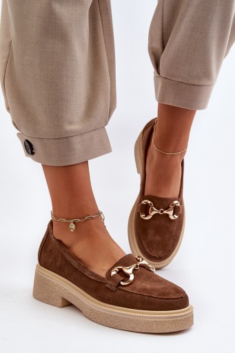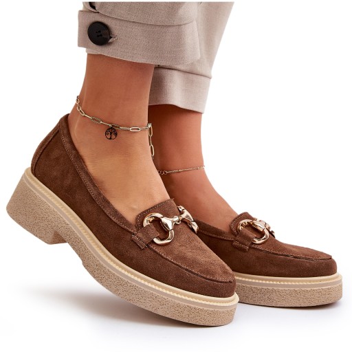 Zazoo 3429 Zamszowe Mokasyny Damskie Z Ozdobą Brązowe - rozmiar 41
