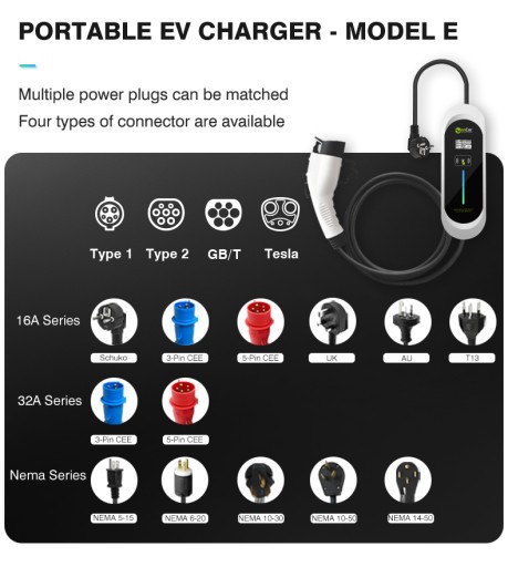 - Regulacja mocy: 2,3kW do 7,4kW (10-32A)