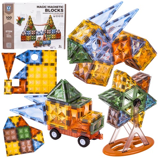 - Kolorowe klocki magnetyczne to zabawka do samodzielnego zaprojektowania i zbudowania.