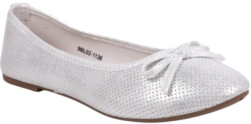 BIAŁE DELIKATNE Z POŁYSKIEM BALERINY NA PŁASKIEJ PODESZWIE WIOSNA LATO KOMUNIA