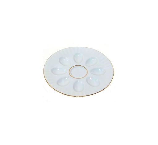 Półmisek okrągły do jaj 21 cm fason ''iwona'' w dekoracji 014 malowany złotem wysokiej jakości. Podstawą do wykonania dekoracji jest porcelana biała z Chodzieży.