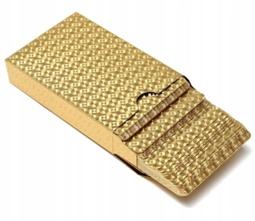 ✅Karty są pokryte efektowną złotą folią, wykonane z plastiku. Plastik ma przewagę nad kartami papierowymi, ponieważ jest wodoodporny oraz odporny na zginanie - przez co karty nie będą znaczone.