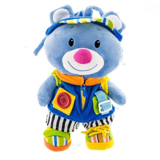 - misiowi można zapinać guziki oraz rzepy w bucikach