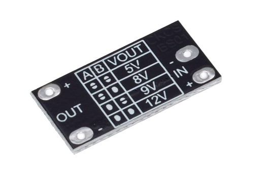 - Prąd wyjściowy w przypadku zasilania z ogniwa Li-Ion/Li-Pol 3,7V 5V1A, 8V0.5A, 9V0.45A, 12V0.3A
