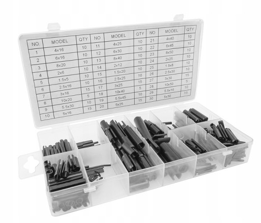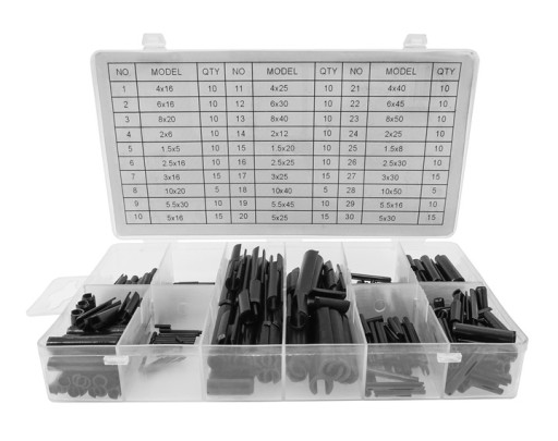Zestaw 315 sztuk kołków sprężystych/rozprężnych.