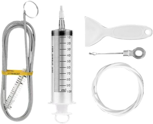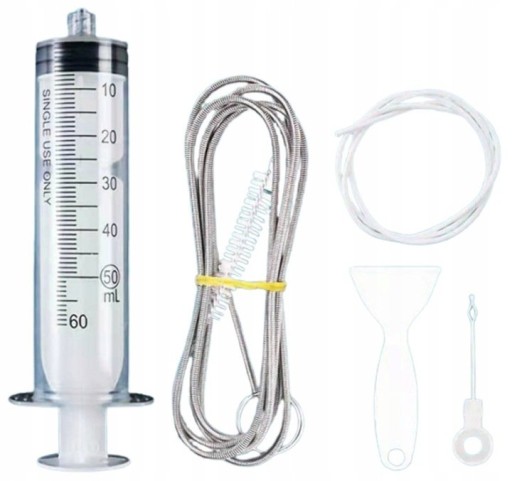 - Strzykawka na Gorącą Wodę: Ułatwia spłukiwanie i rozpuszczanie zatorów za pomocą gorącej wody.