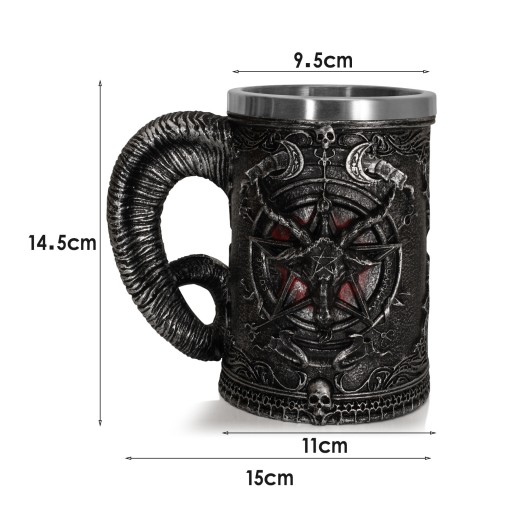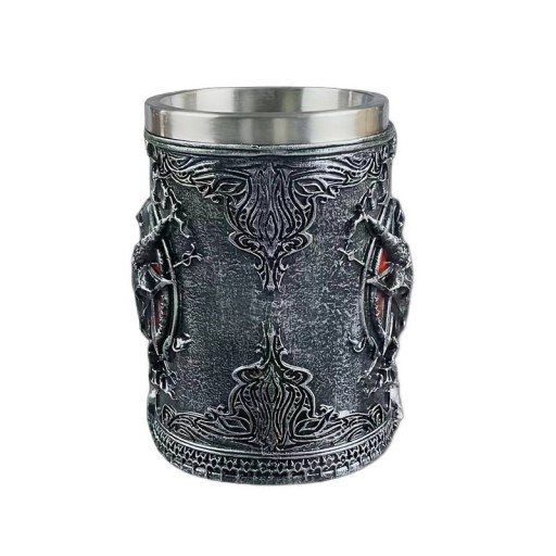 Epicki kubek wykonany z żywicy, z wkładką ze stali nierdzewnej. Wymiary wewnętrzne kubka są idealnych rozmiarów, aby móc przechowywać w nim puszki standardowej wielkości.
