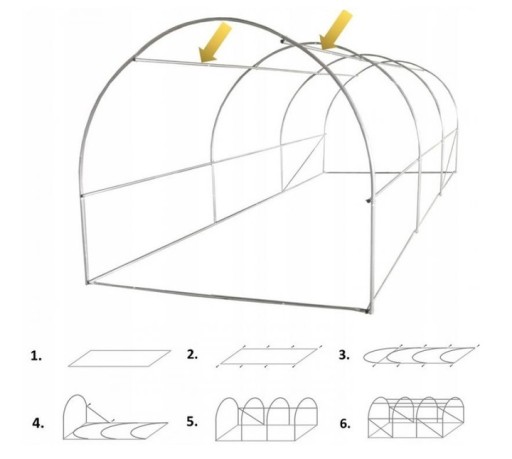 Krok 6. Zamontuj pozostałe poprzeczki oraz rurki skośnie. Gdy wszystkie elementy zostaną złożone możesz dokręcić śruby do końca. Załóż folię oraz zakotwicz tunel w podłożu.
