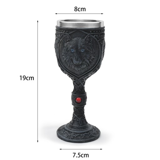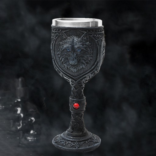 Epicki kielich wykonany z żywicy, z wkładką ze stali nierdzewnej i pięknymi zdobieniami.