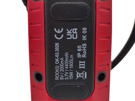 Lampa posiada wbudowany akumulator 3,7V Li-ion o pojemności 4400 mAh.