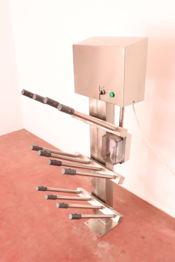 Suszarki obuwia jednostronne z zaworkami stosowane są w zakładach przemysłu spożywczego jako element śluzy sanitarnej. Przeznaczone są do suszenia obuwia gumowego (szczególnie kaloszy) pracowników po zakończeniu pracy. Obuwie zawieszane jest na króćcach suszarki. Zewnętrzne zimne powietrze, przechodzące przez wentylator do ramy suszarki, jest ogrzewane za pomocą elektrycznej grzałki, dezynfekowanej pod działaniem bakteriobójczej lampy, następnie podawane jest wzdłuż ramion bezpośrednio do zawieszonych butów, zapewniając wysoką skuteczność suszenia ciepłym powietrzem oraz dezynfekcję. Możliwość nadmuchu zimnego lub ciepłego powietrza. Suszarka obuwia jednostronna posiada wyłącznik czasowy. Posiada zabezpieczenie przed przegrzaniem (wyłącznik termiczny).