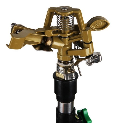 Do profesjonalnego nawadniania. Zraszacz pulsacyjny na trójnożnym statywie jest idealny do dużych obszarów (np., trawniki, sady owocowe). Nogi statywu są składane, zapewniają bezpieczną i pewną pozycję.