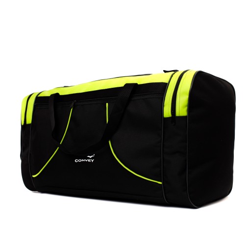 Torba podróżna firmy Convey dzięk swojej pojemności oraz funkcjonalośći świetnie sprawdzi się podczas dłuższego wyjazdu. Jest uniwersalna, spełni swoje funkcje także podczas aktywności fizycznych. Solidna torba wykonana z grubego odpornego na przetarcia materiału. Torba posiada pojemną komorę główną zapinaną na 2 suwaki, co pozwala na łatwiejszy dostęp do zawartości wnętrza. Po bokach dwie oddzielne kieszenie zapiane na zamek, dzięki którym można wygodnie zorganizować swoje rzeczy. Torbę można nosić na 2 sposoby: za górne rączki oraz na ramieniu. Pas naramienny jest szeroki wyposażony w solidny gumowy ochraniacz zapewniający komfort użytkowania. Pas z możliwością odczepiania oraz dostosowania jego długości do własnych potrzeb. Z przodu torby dodatkowa kieszeń na zamek.