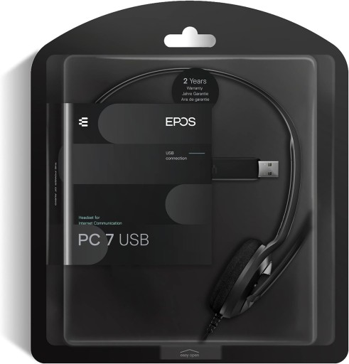 EPOS PC 7 USB - Słuchawka multimedialna ze złączem USB dla VoIP z pałąkiem nagłownym na jedno ucho, mikrofon z wyciszaniem szumów. Kompatybilna z rozwiązaniami producentów UC