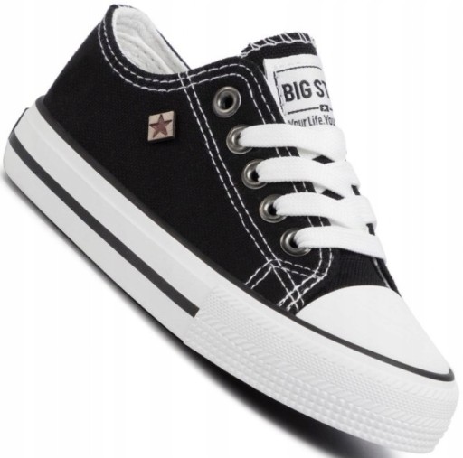 BIG STAR dziecięce, sznurowane buty. Wierzchnia część butów tworzy materiał - materiał. Wnętrze oddychające, jego głównym składnikiem jest materiał. Nie zabrakło chłonnej wkładki, to materiał. Podeszwa to guma. Buty zapewniają zdrowy rozwój stopy i komfort noszenia.