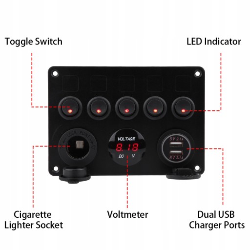 ▶️Bardzo luksusowy zmodyfikowany panel przełączników 5-krotnych z zielonym / czerwonym (opcjonalnym) światłem roboczym LED.