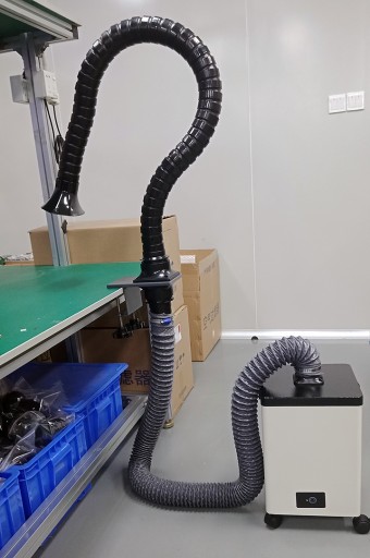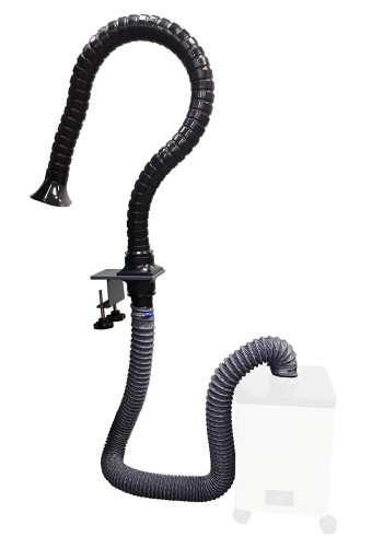 Jeden adapter należy zamontować do uchwytu do stołu (od dołu) a drugi w pochłaniaczu. Na oba adaptery należy zamontować rurę elastyczną 75mm z opaską zaciskową. Oryginalną rurę pochłaniacza należy zamontować w górnej części uchwytu do stołu.