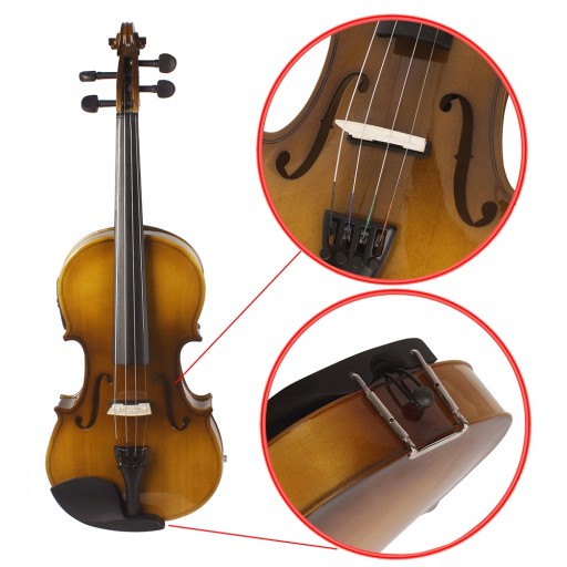 Z przewodem łączącym 6,35 mm 1/4 cala. Wysokiej jakości sznurek i łuk do altany dla miłego brzmienia. Pochodzi z podparcia na ramiona, futerału, łuku, drutu łączącego, dodatkowego zestawu sznurków, kalafonii i czystej szmatki.