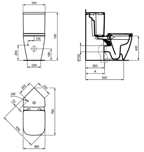 SPŁUCZKA: 3 / 6 l (dopływ wody z dołu)