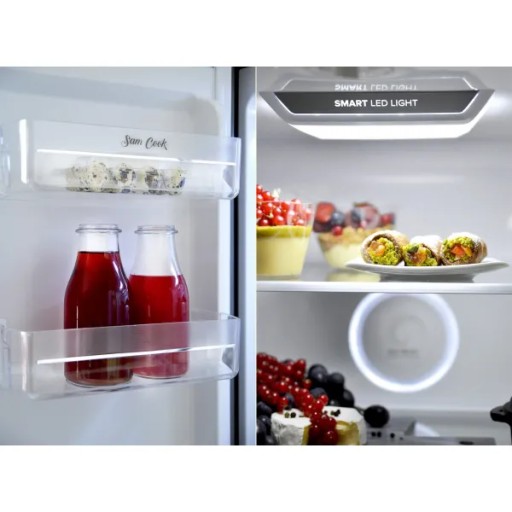 Lodówka PSC-WG-1010/B marki Sam Cook oprócz wielu praktycznych i pojemnych półek na żywność posiada specjalne komory dla łatwiejszego i dłuższego przechowywania produktów.