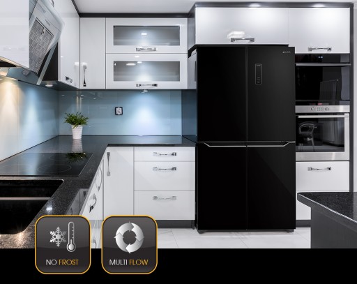 Lodówka PSC-1010/B została wyposażona w system Multi Flow. Zapewnia on odpowiedni poziom temperatury oraz równomierne rozprzestrzenianie powietrza w całej lodówce. Dzięki tej funkcji do każdej z półek dociera odpowiednia ilość zimnego powietrza, a przechowywana żywność pozostaje świeższa na dłużej. Funkcja Multi Flow ma także przyspieszać schładzanie komory po otwarciu drzwi urządzenia.