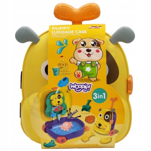 Zestaw do zabawy piaskiem i wodą od marki WOOPIE zaspokoi wszystkie potrzeby podczas podróży, zabawy w piaskownicy oraz plaży! Zestaw 3w1 - wszystko zapakowane jest w walizkę, w której znajdują się akcesoria do piasku i zabawkę wodną. Walizkę wystarczy położyć na tył wypełnić spód wodą i dzięki kubeczkowi wlać wodę do głowy i obserwować jak ścieka woda. Taka zabawa rozwija zmysły dziecka oraz skupia jego uwagę. Akcesoria pozwalają na kompletną zabawę w piasku, nawet we dwoje! Zabawka spełnia wszystkie potrzeby do zabawy na dworze!