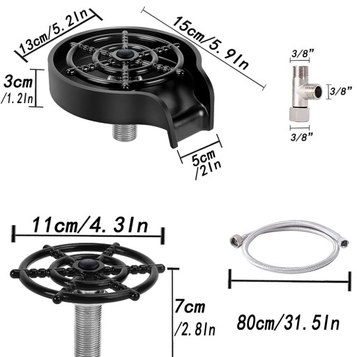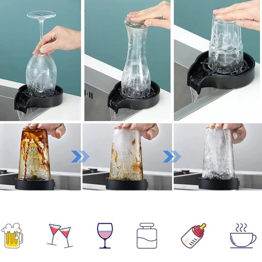 Szeroko stosowany: wysokociśnieniowy szklany prysznic może z łatwością spłukać kieliszki do wina, butelki dla niemowląt, kieliszki do szampana, kieliszki do martini, kieliszki do margarity, kubki, szklanki do latte, butelki na wodę, shakery do koktajli, słoiki na mason i wiele innych. Nadaje się do zlewozmywaków kuchennych, barowych, kawiarnianych, restauracyjnych i hotelowych.