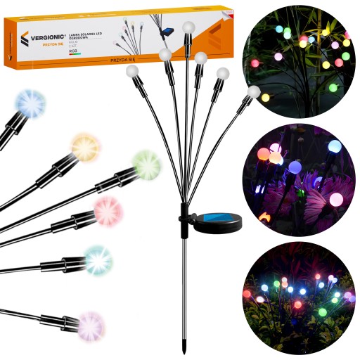 Lampa Solarna Ogrodowa Wbijana kulki RGB 6xLED 70cm Ozdoba Ogródka