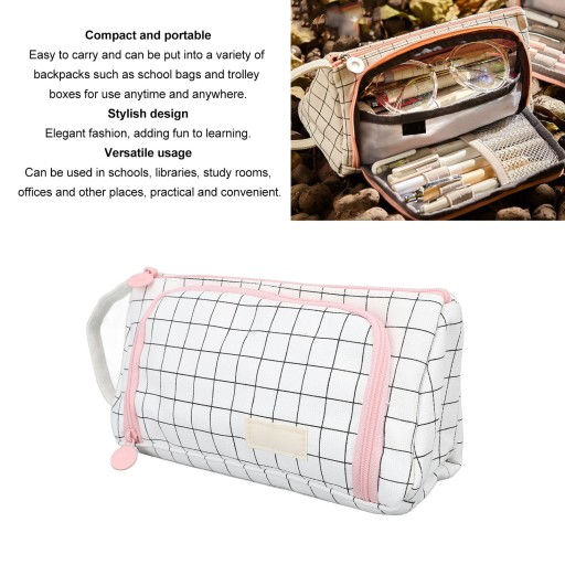5. [Śliczny design]: Piękny kolor i wzór w kratkę nadają piórnikowi modny i elegancki wygląd, dodając odrobinę zabawy do nauki lub pracy.