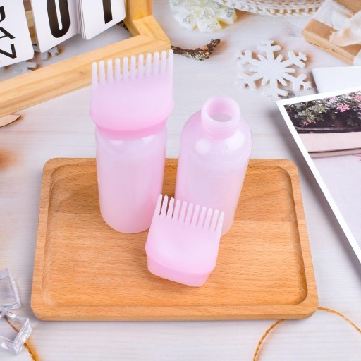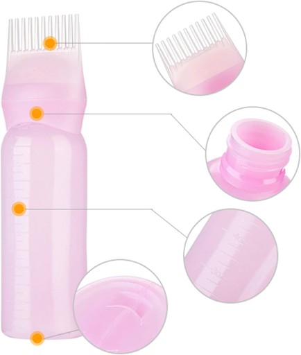 Unikalna konstrukcja: główka butelki z aplikatorem koloru ma kształt grzebienia, miękki korpus butelki ze stopniowaną skalą i piękny kształt zapewniający wygodę dla koloru włosów.
