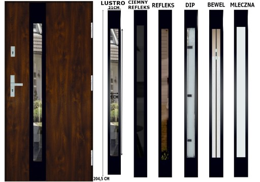 MODEL DRZWI INOX 4 BLACK KOLOR ORZECH SZYBA LUSTRO WENECKIE,CIEMNY REFLEKS, REFLEKS, DIP, BEWEL, MLECZNA+WYMIARY PRZESZKLENIA I ZDOBIEŃ :